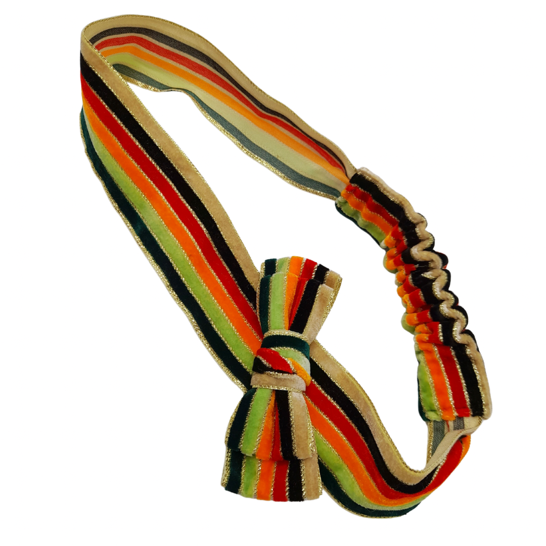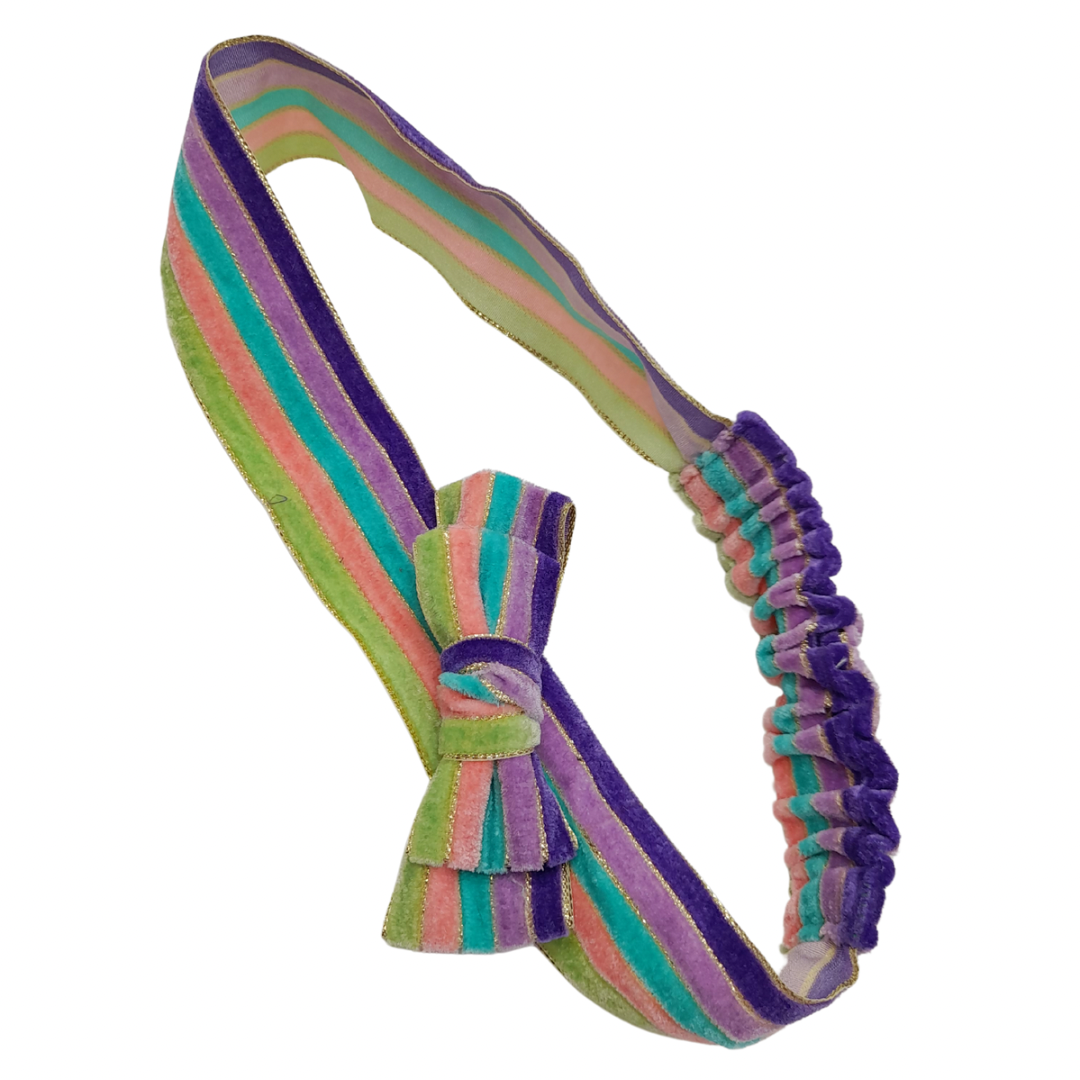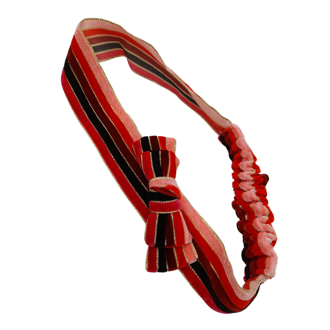Diadema con elástico, confeccionada en cinta de terciopelo y adornada con un lazo doble que aporta un toque elegante y femenino. Cómoda y versátil, es perfecta para complementar cualquier look con estilo y suavidad.