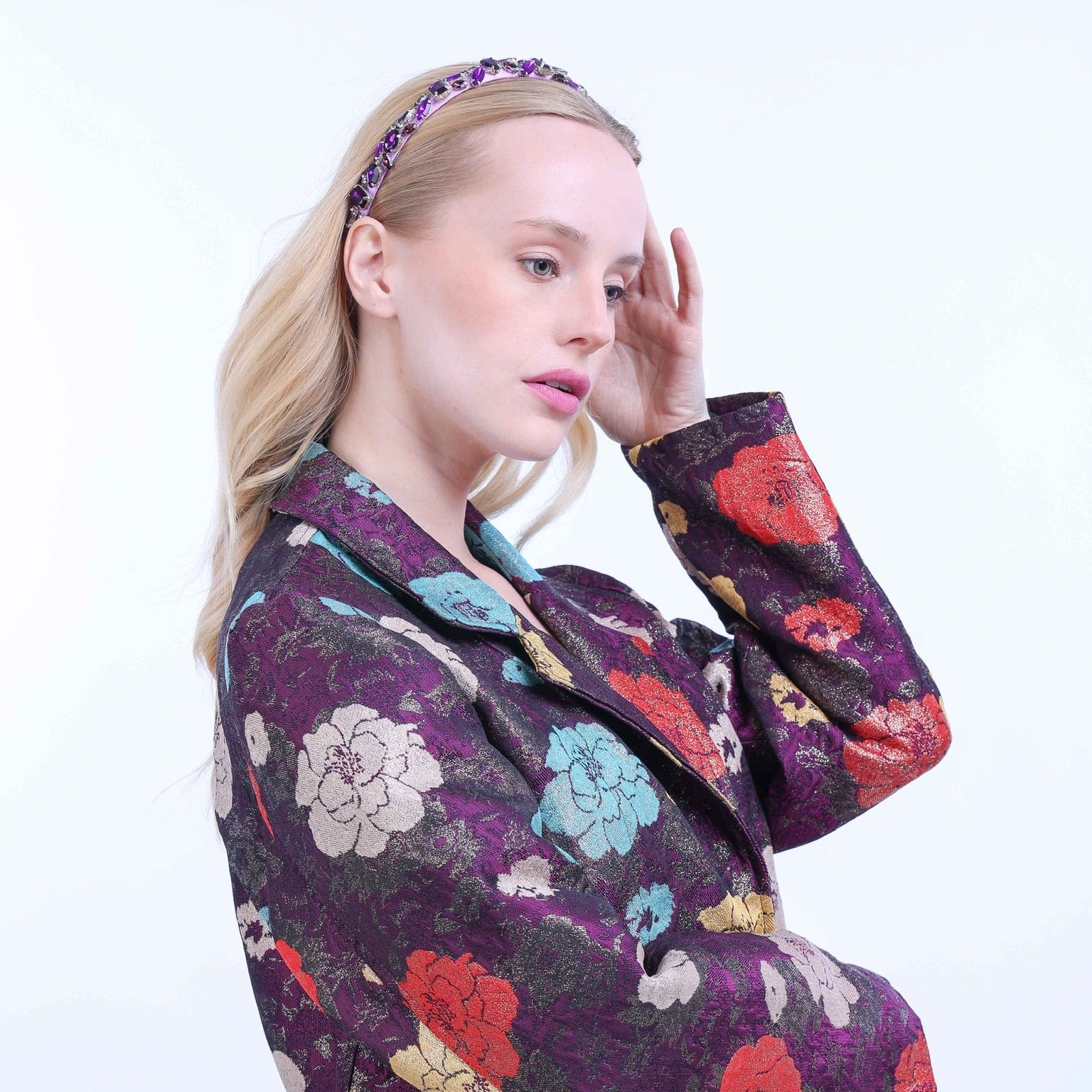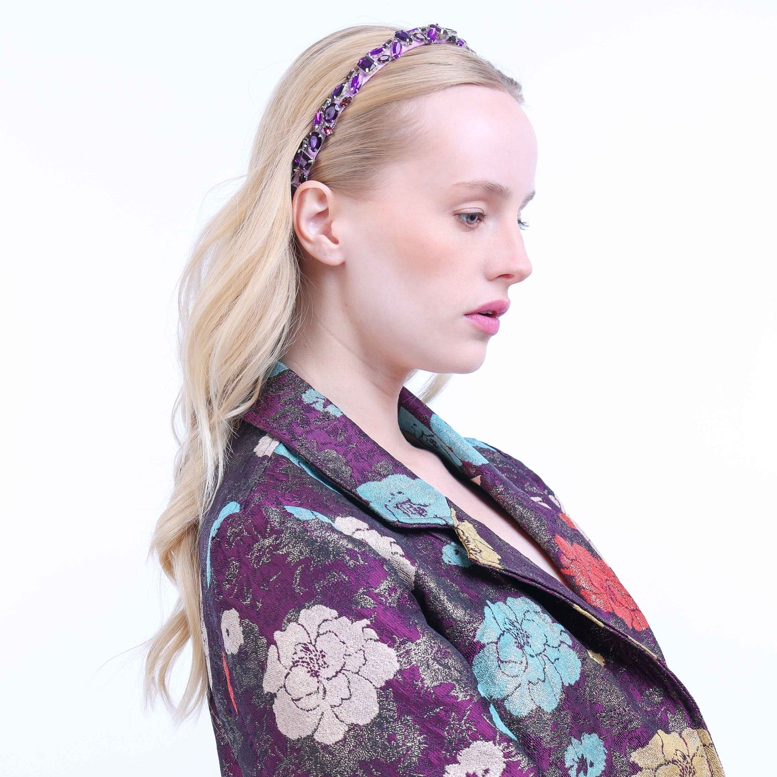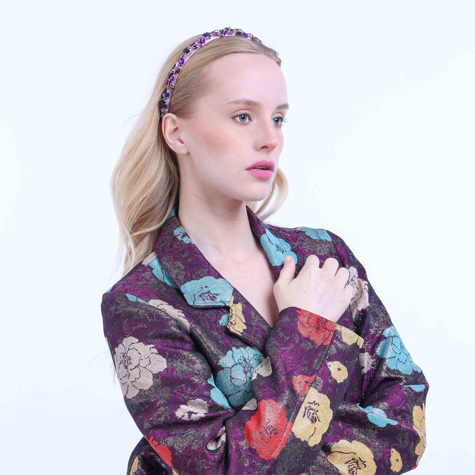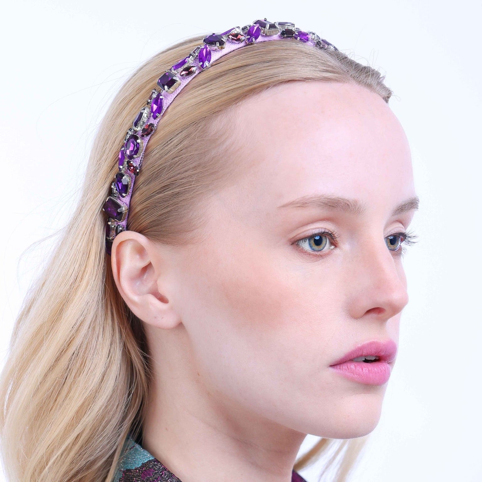 Diadema delgada, bordada con pedrería sobre tul, que aporta un brillo sutil y sofisticado. Perfecta para realzar peinados con un detalle delicado y femenino, ideal para ocasiones especiales o looks elegantes.