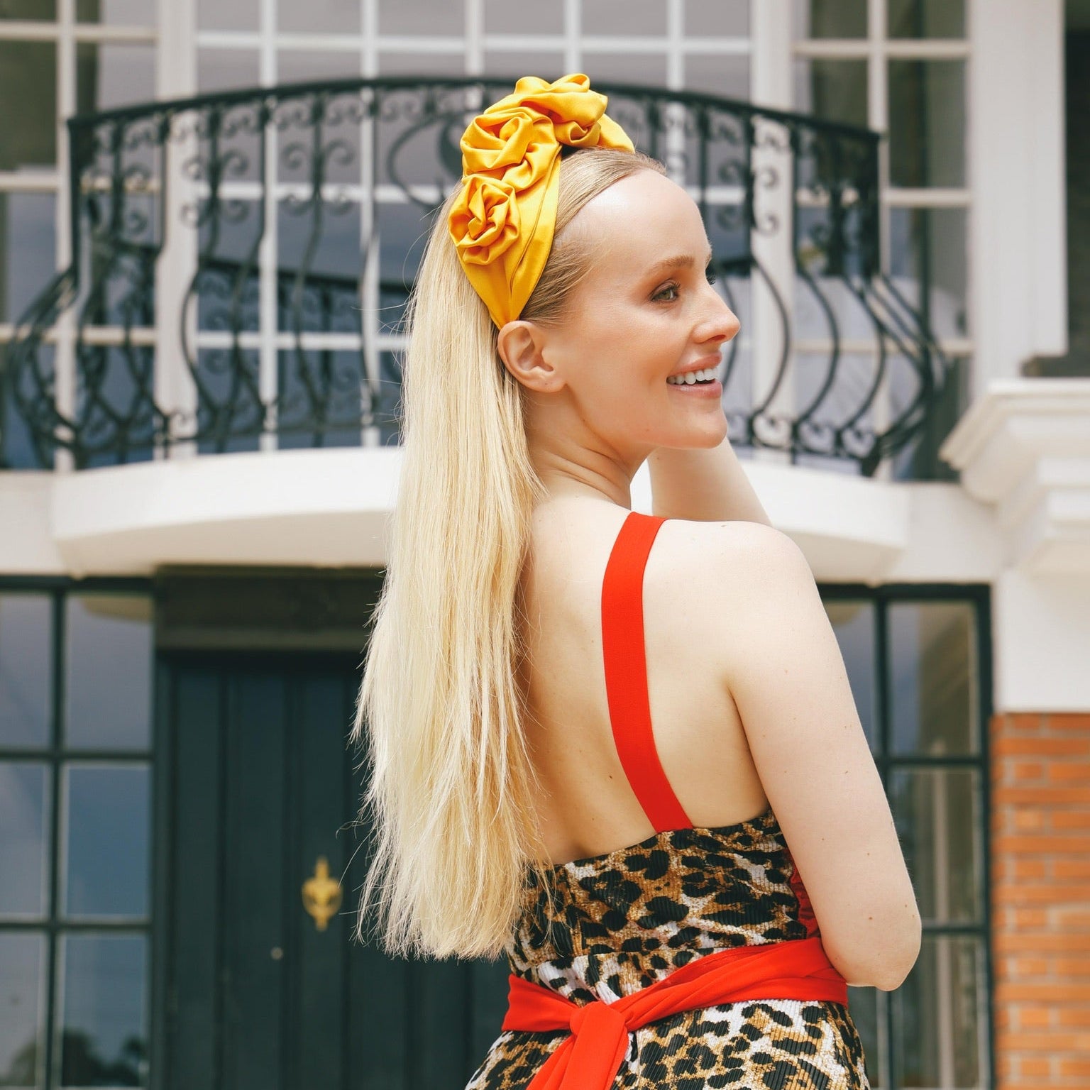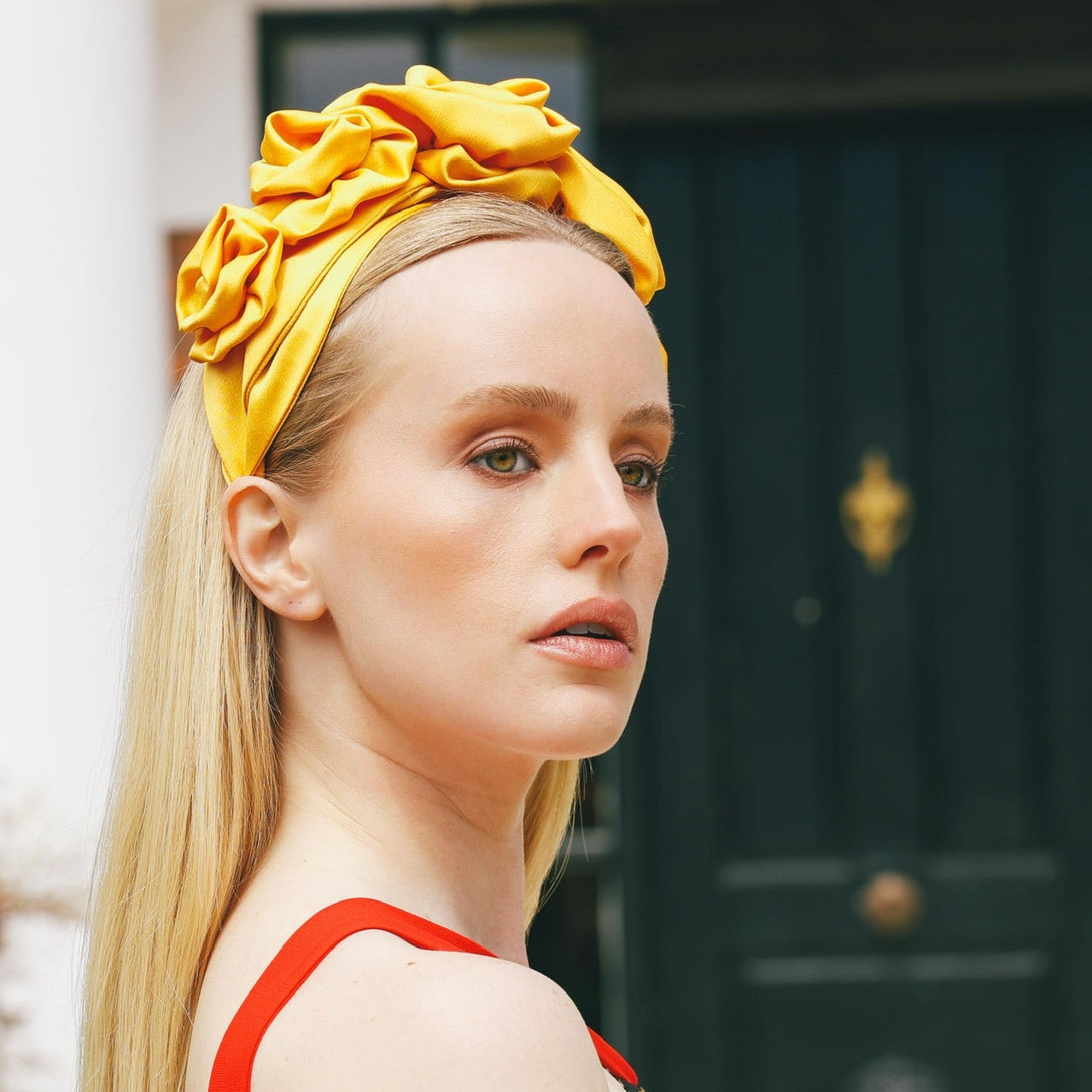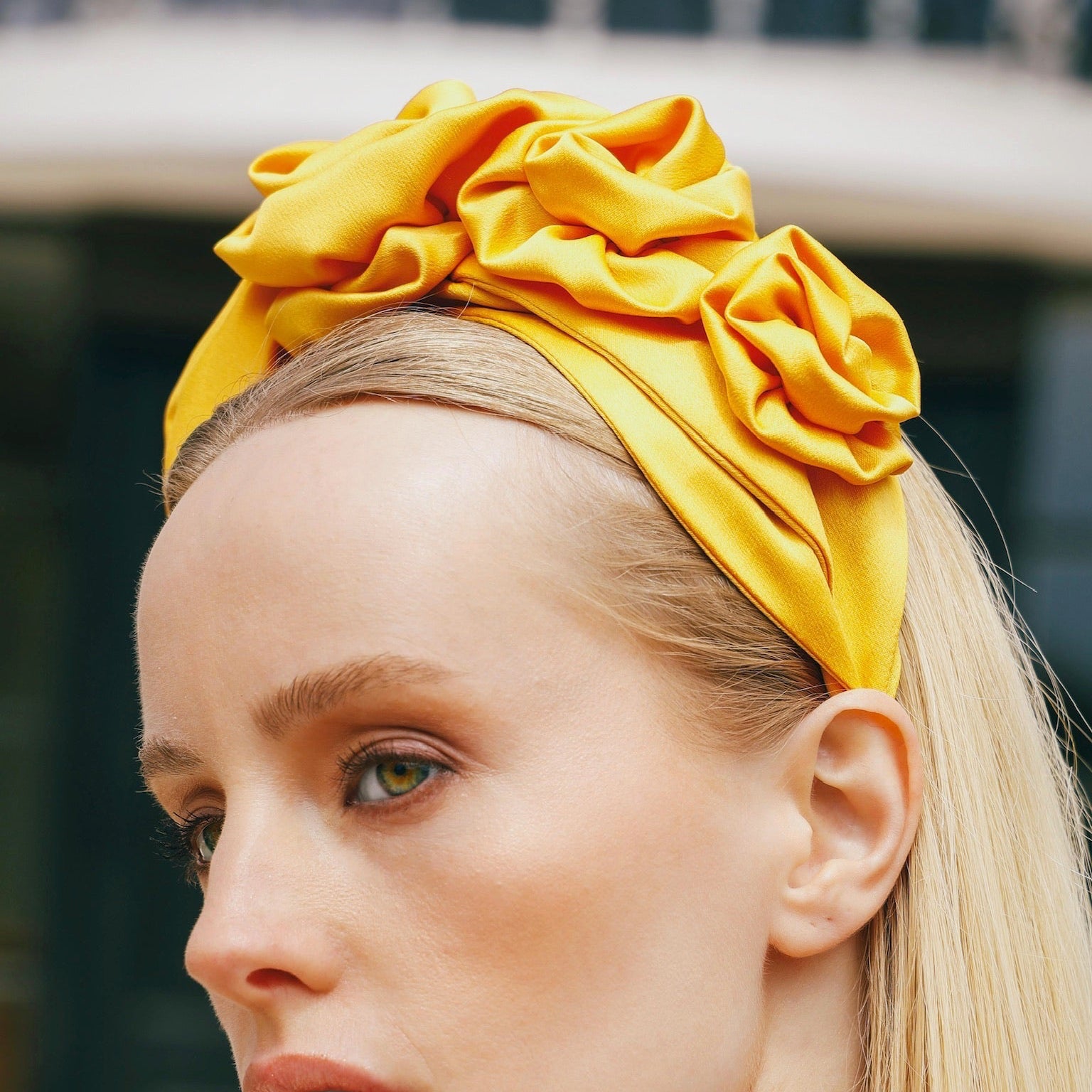 Diadema ancha adornada con cinco flores en crepé de seda, que aportan un toque sofisticado y romántico. Ideal para realzar peinados con un detalle único y encantador, perfecto para bodas, celebraciones o cualquier ocasión especial