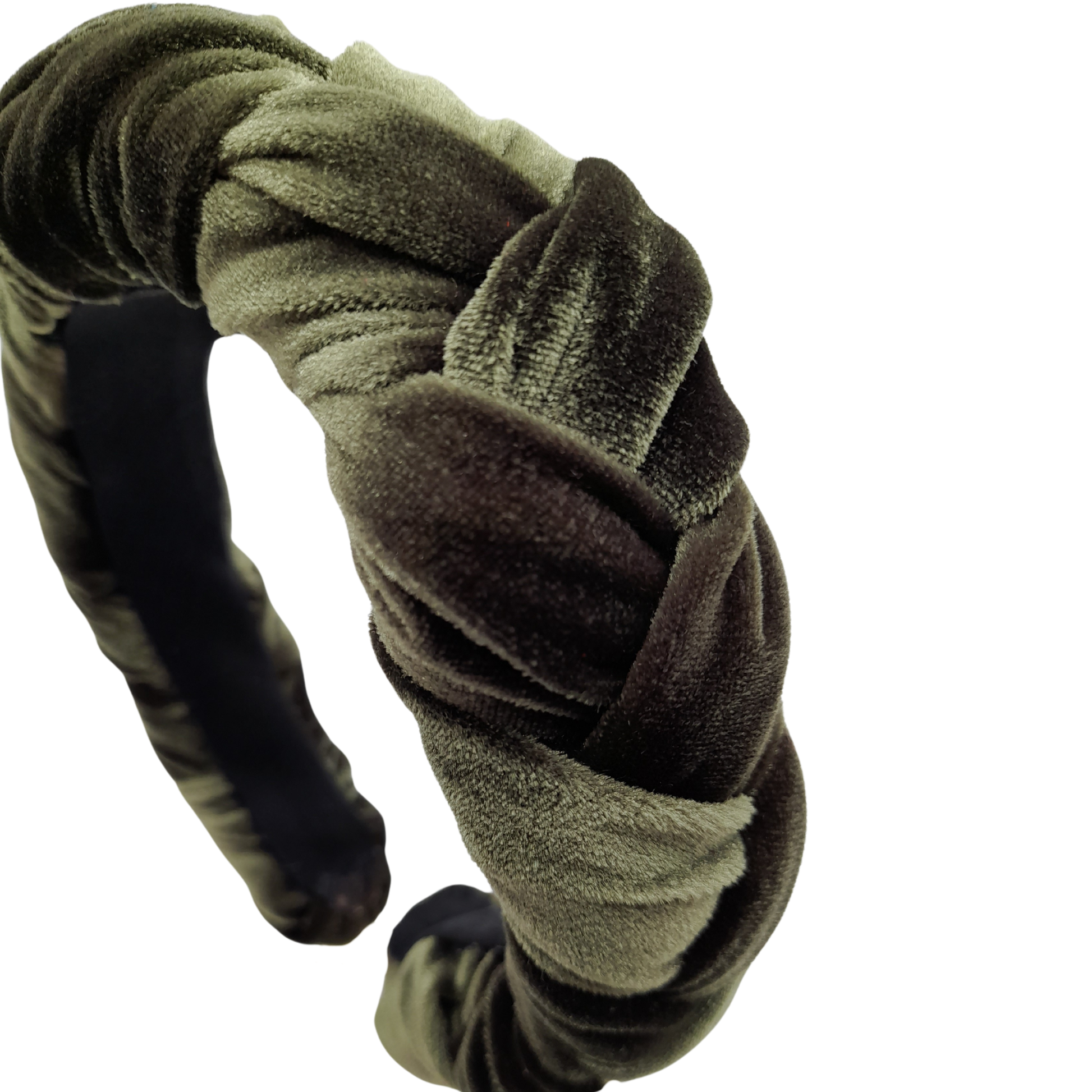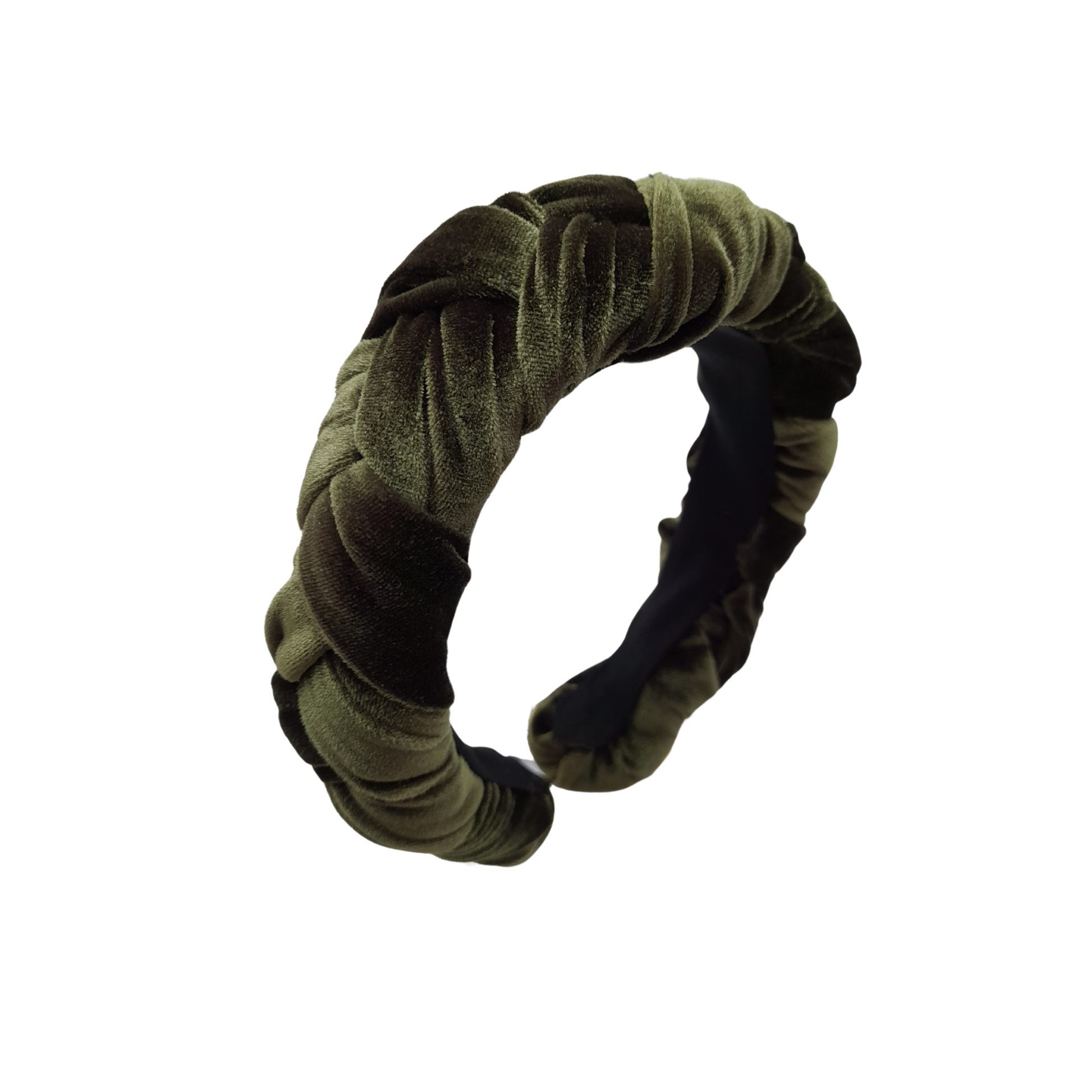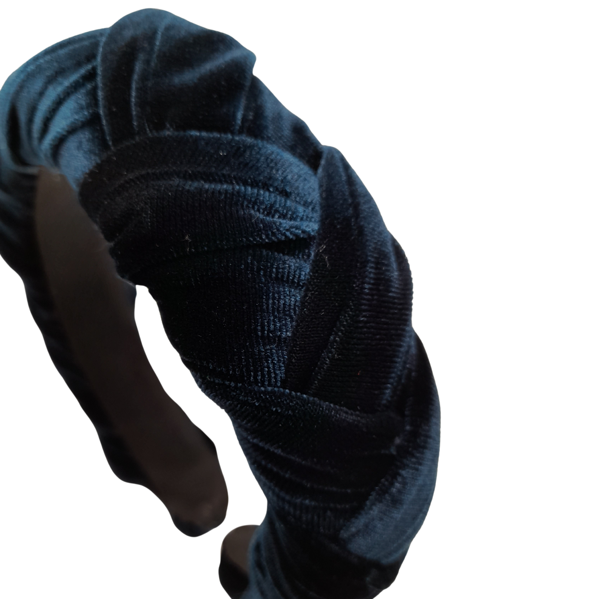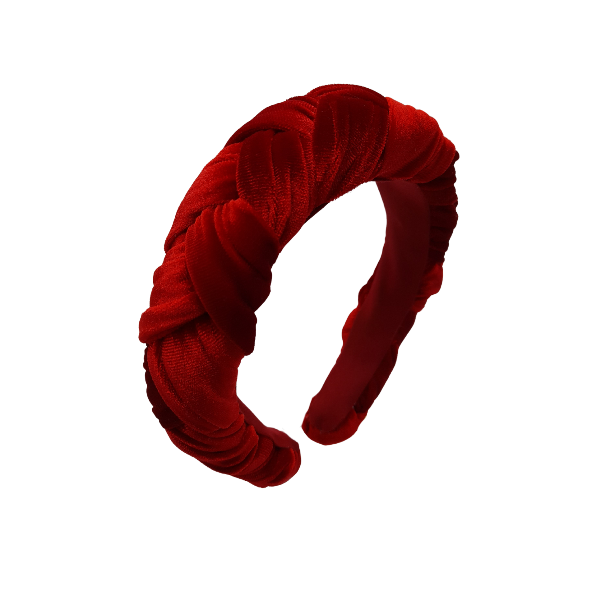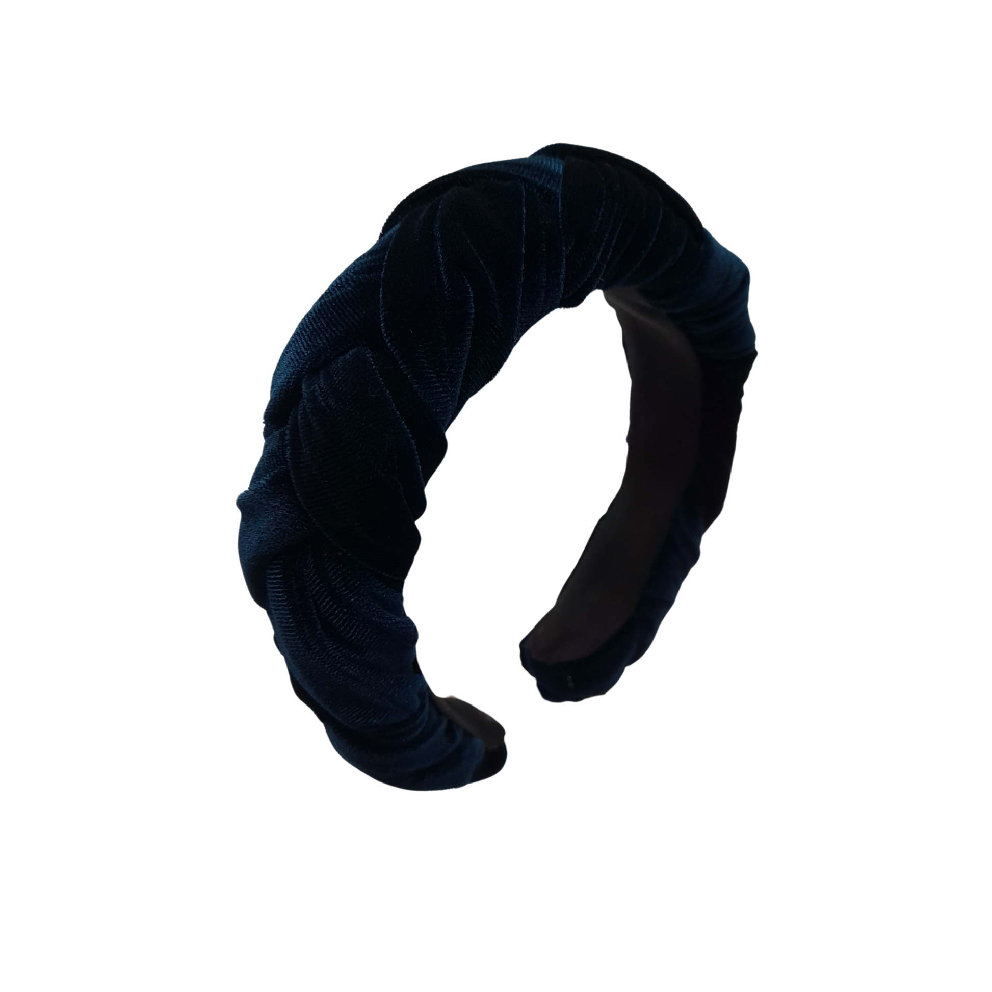 Diademas altas y anchas, confeccionadas con terciopelo trenzado que aporta textura y un estilo sofisticado, ideales para complementar cualquier look con un toque elegante y moderno.