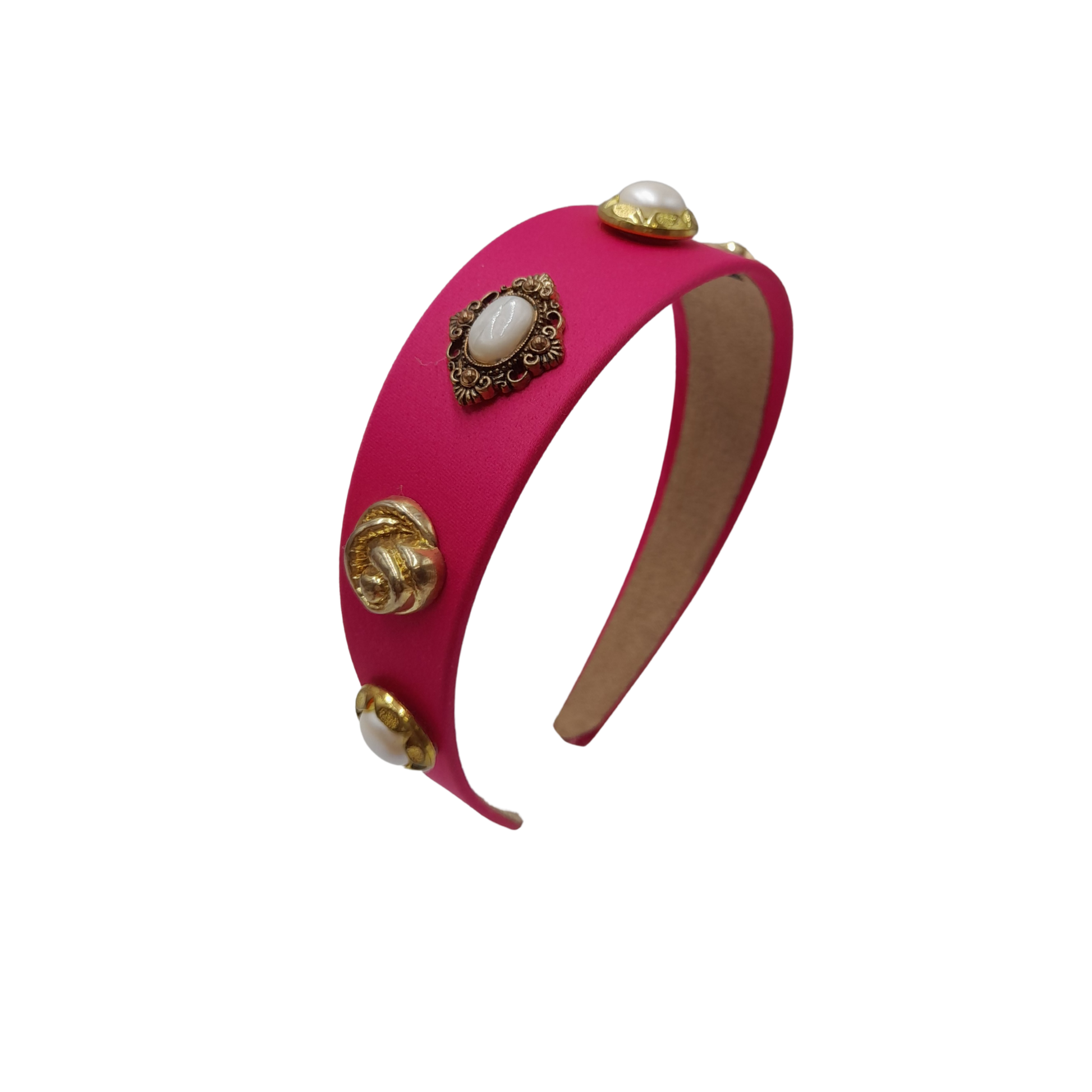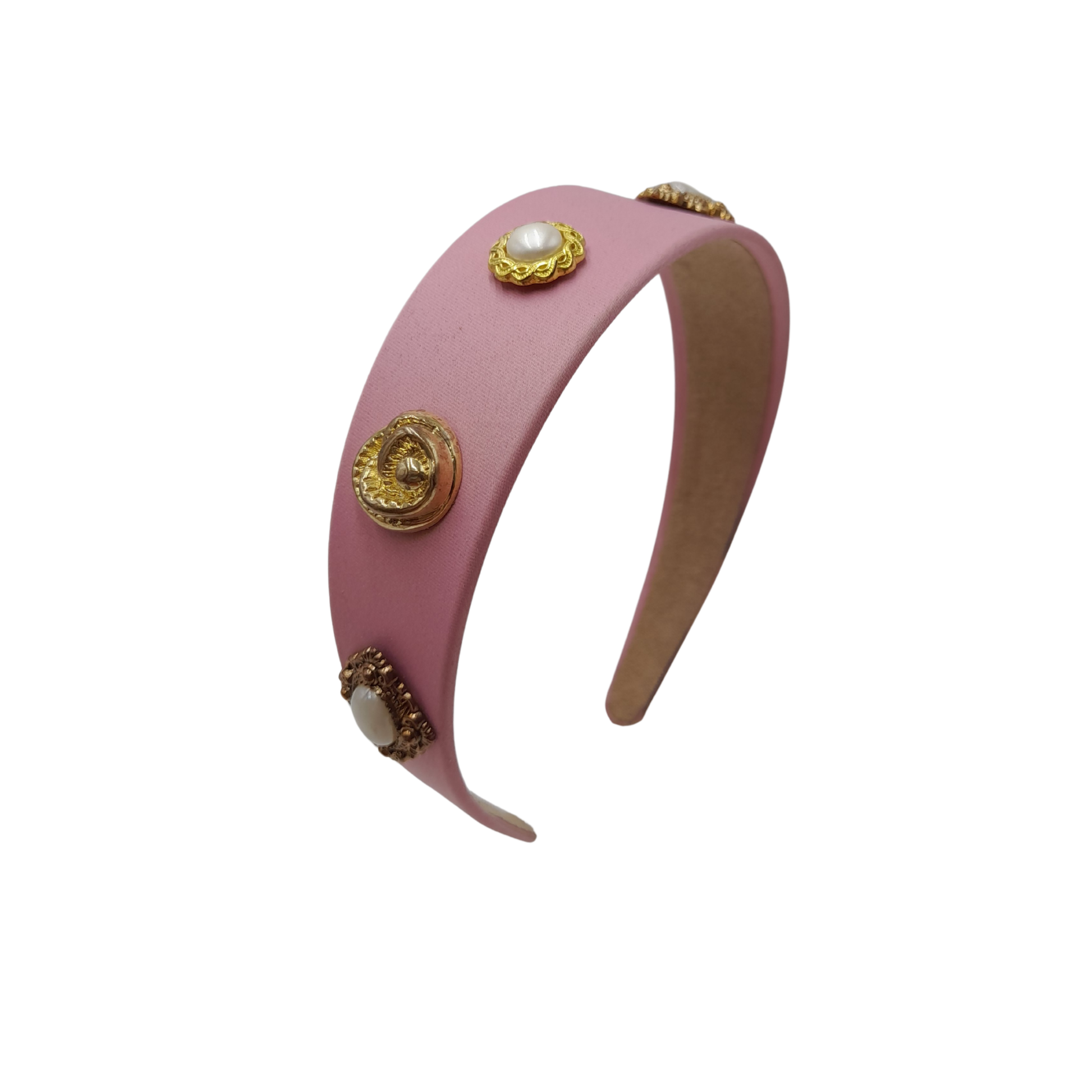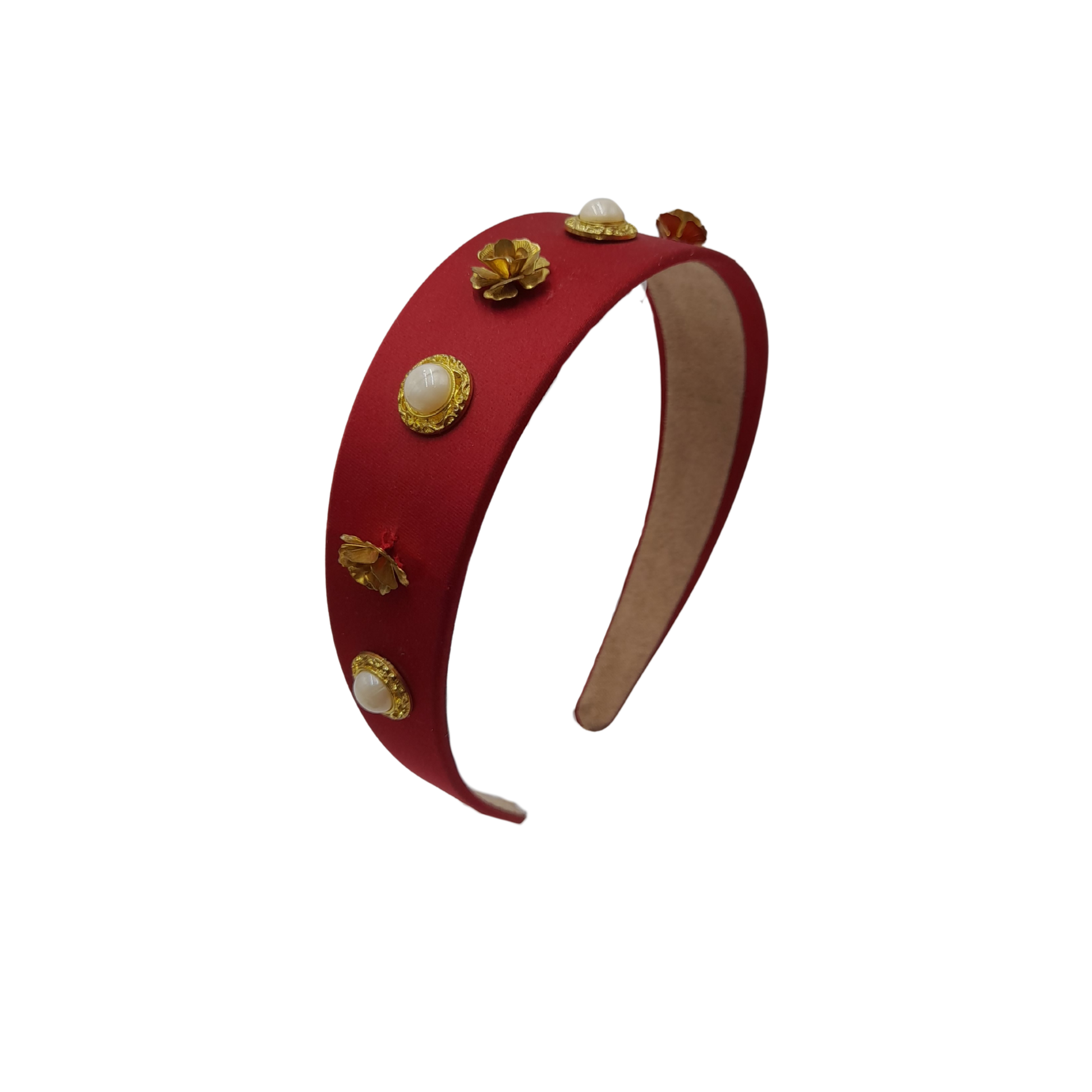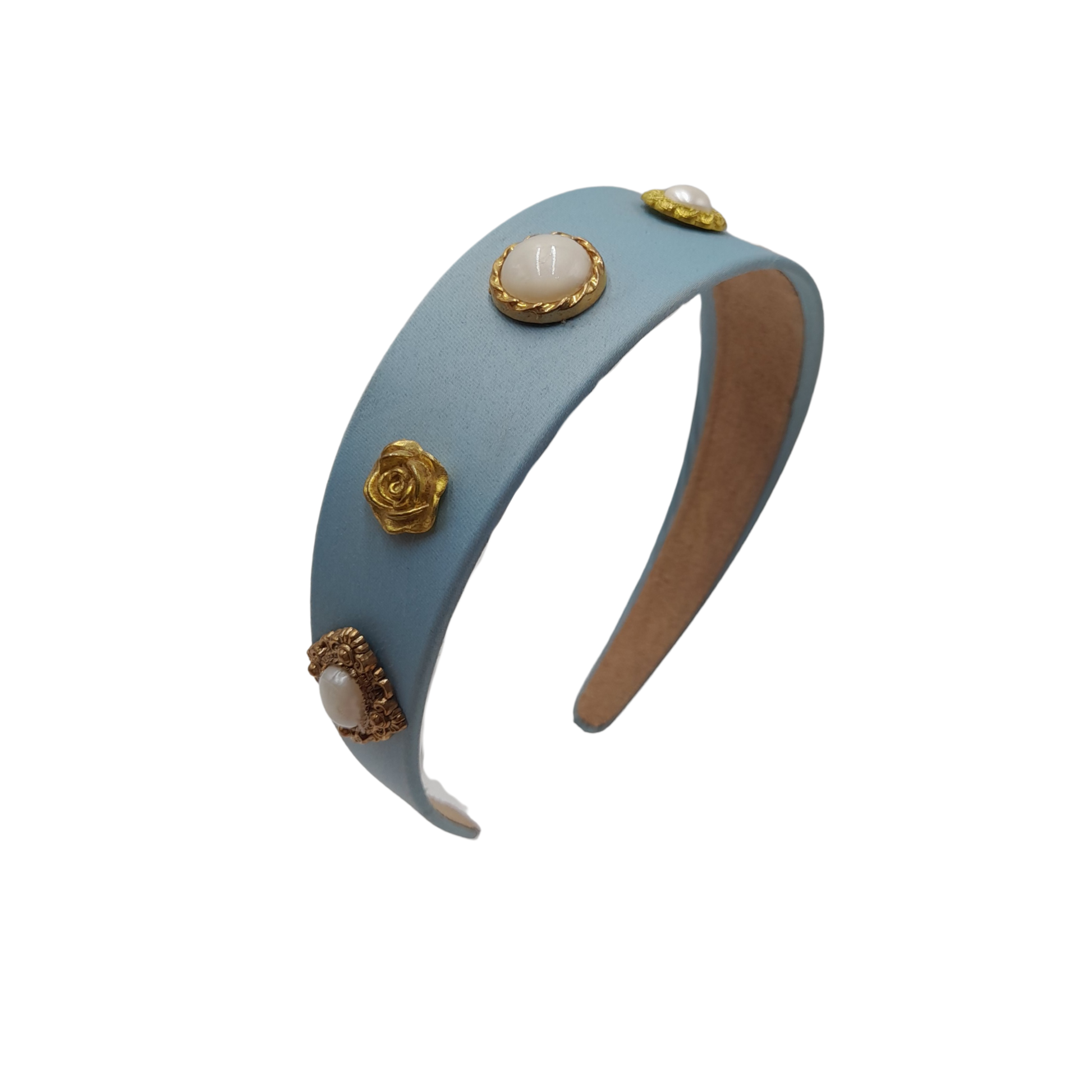 Diadema ancha y plana, adornada con botones que aportan un toque único y moderno a tu peinado, ideal para agregar personalidad y estilo a cualquier look