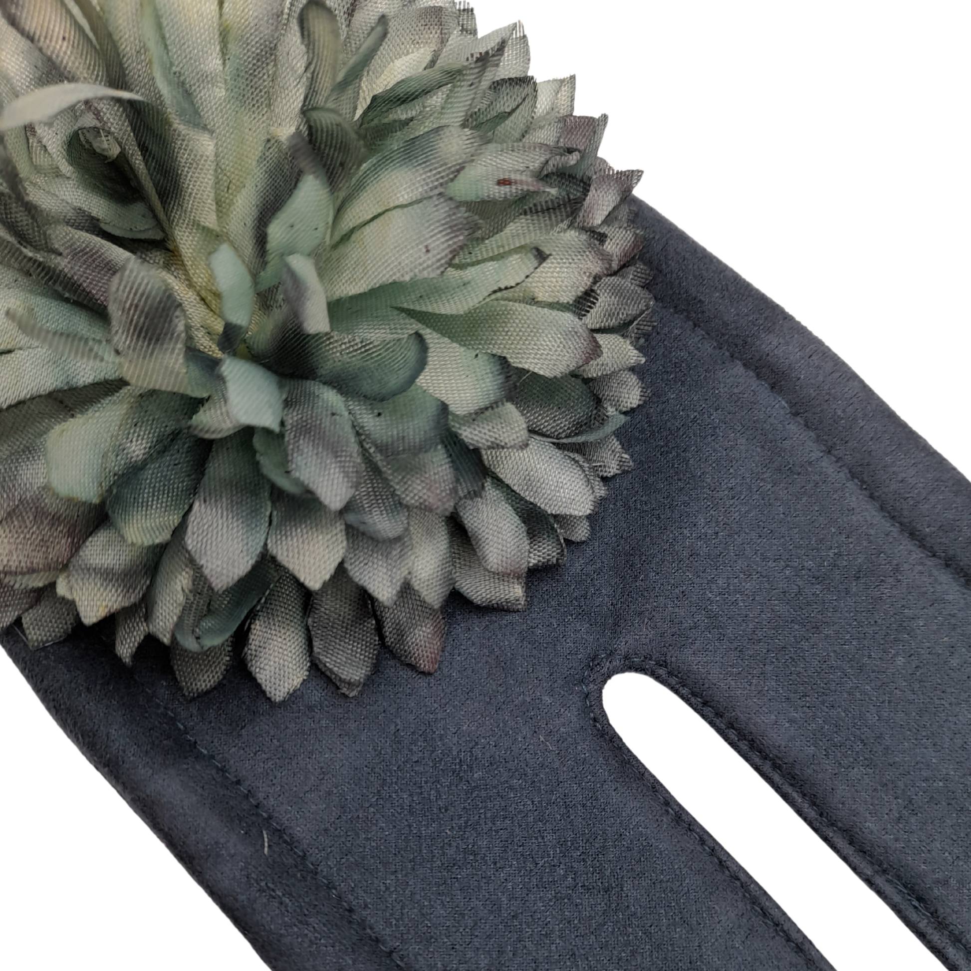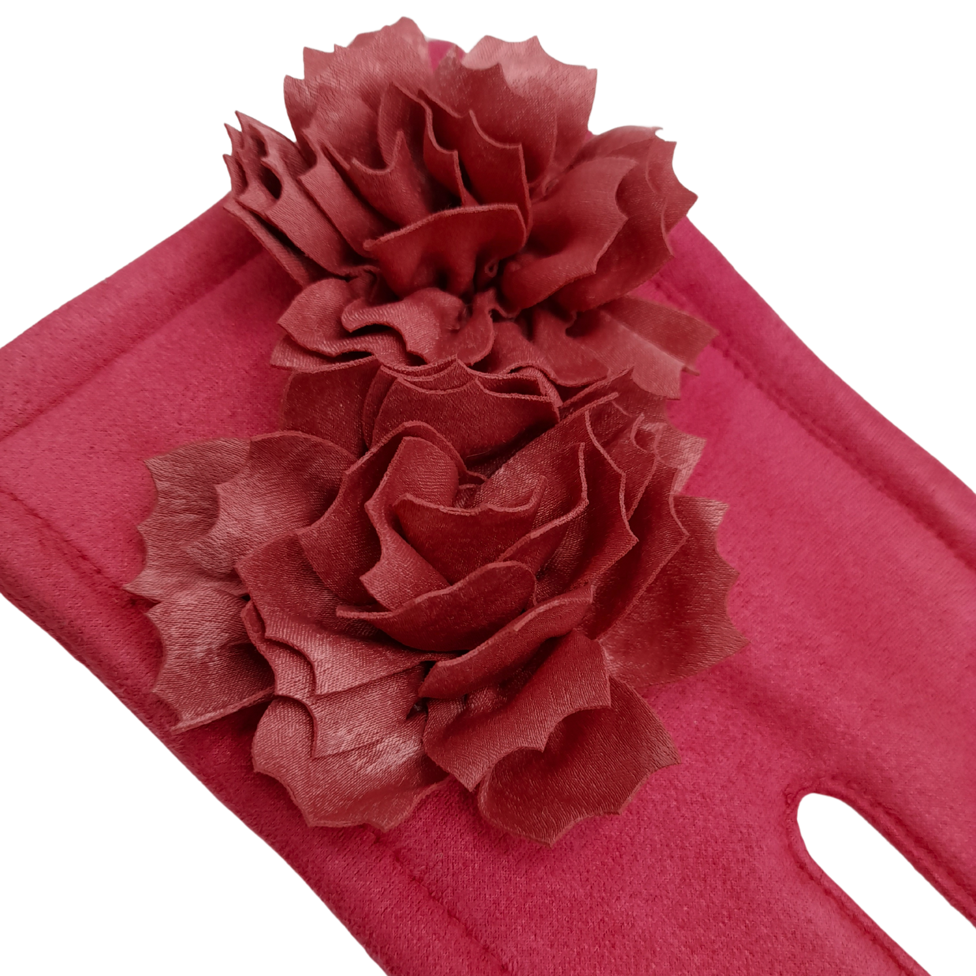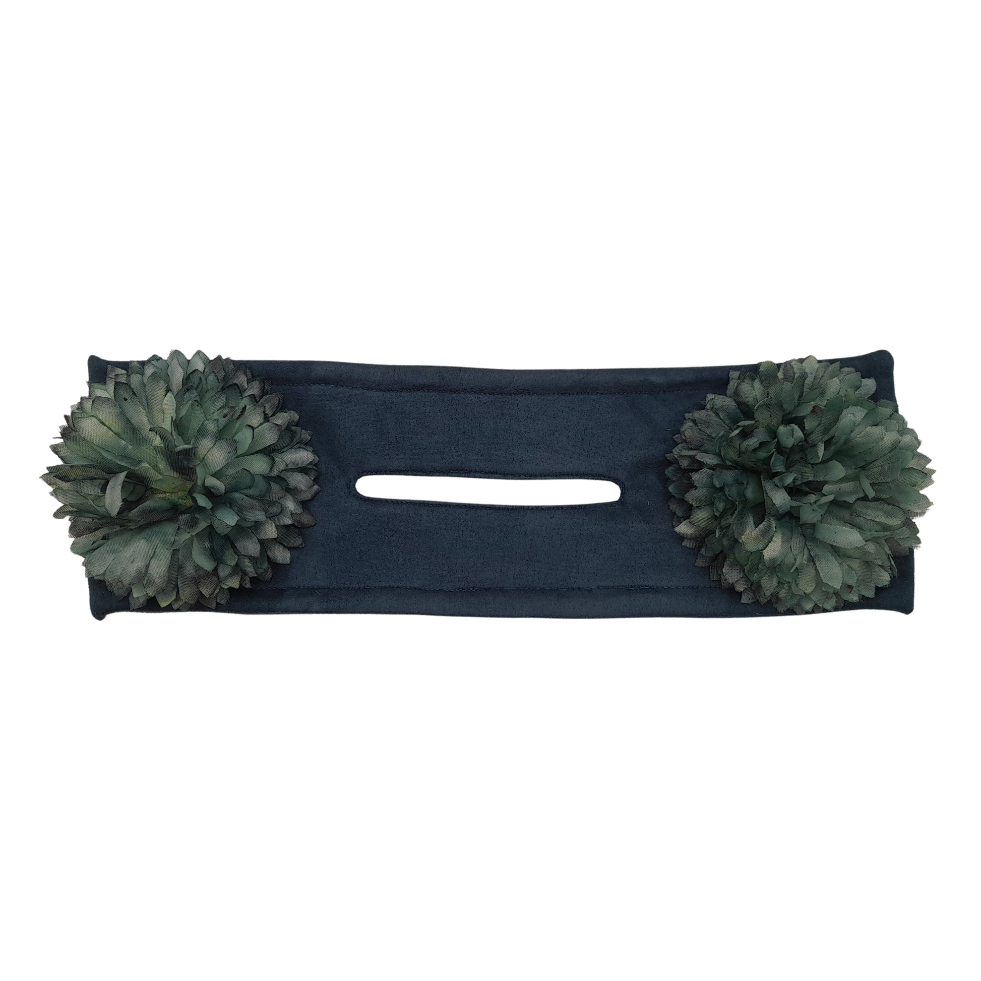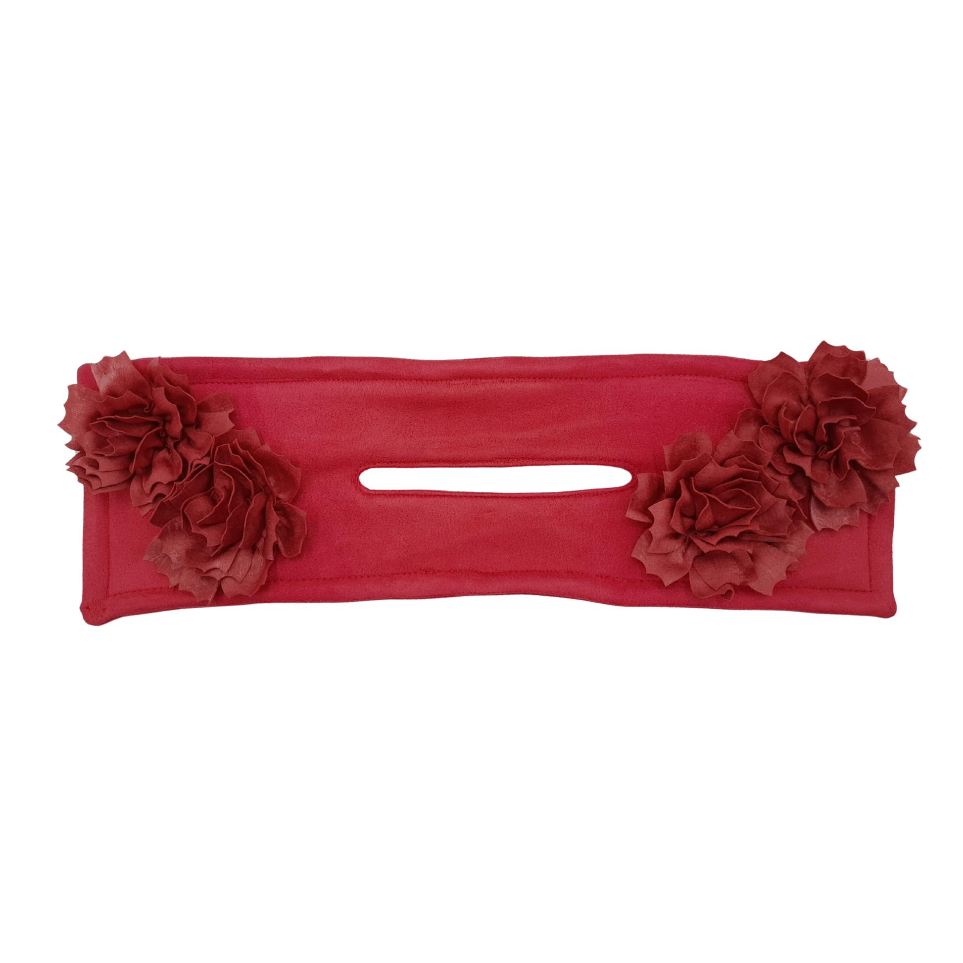 Colet con abertura central y alambre interno que permite moldearlo con facilidad, confeccionado en gamuza y adornado con flores, ideal para crear peinados con un toque creativo, femenino y delicado.