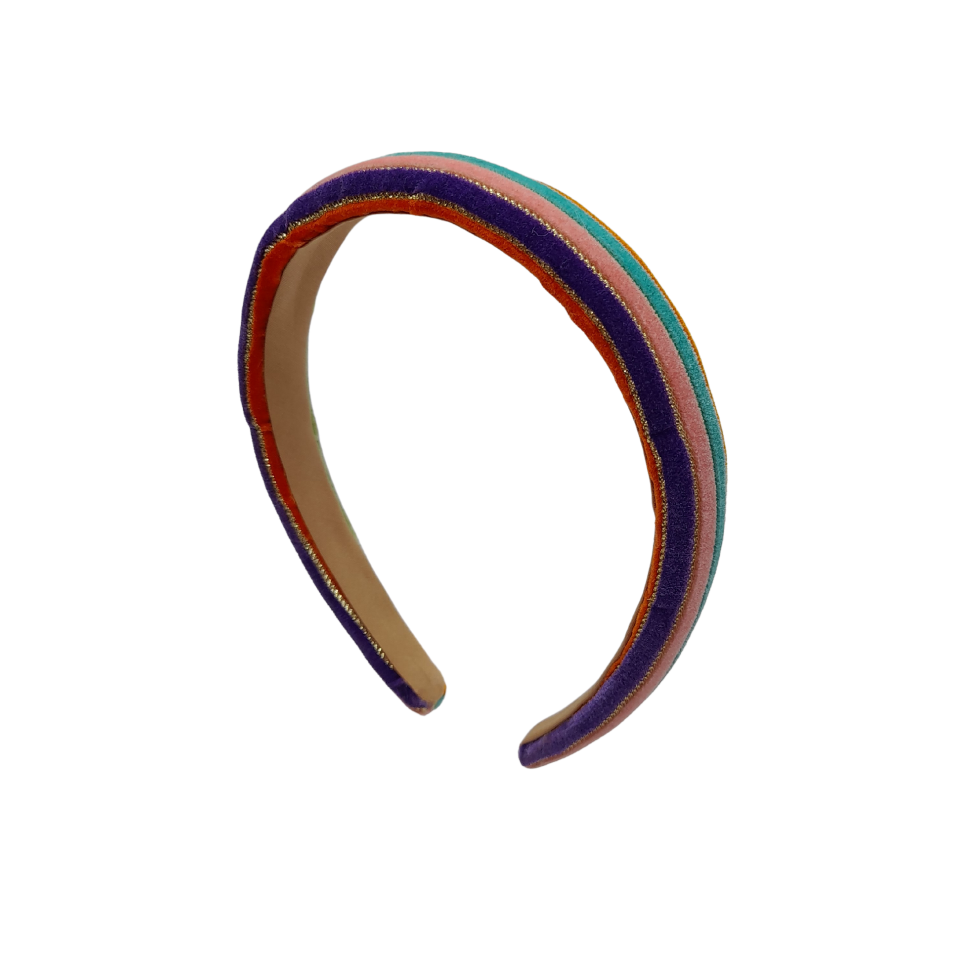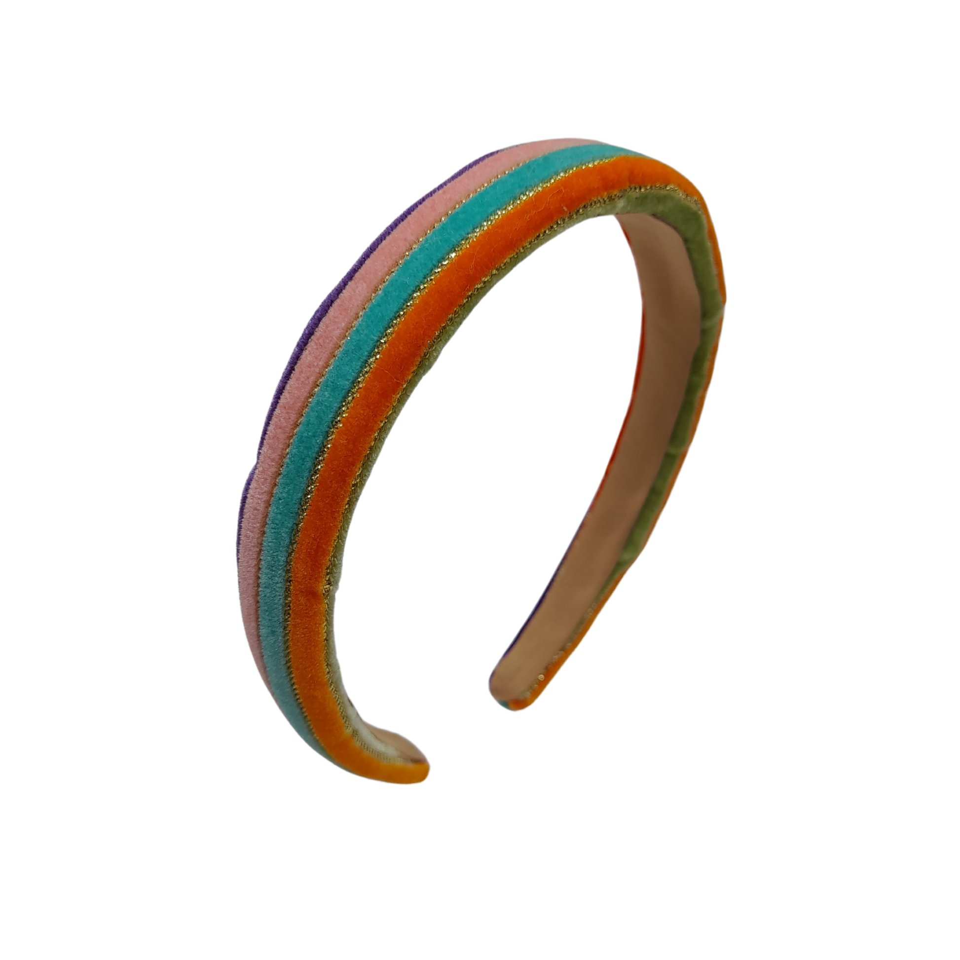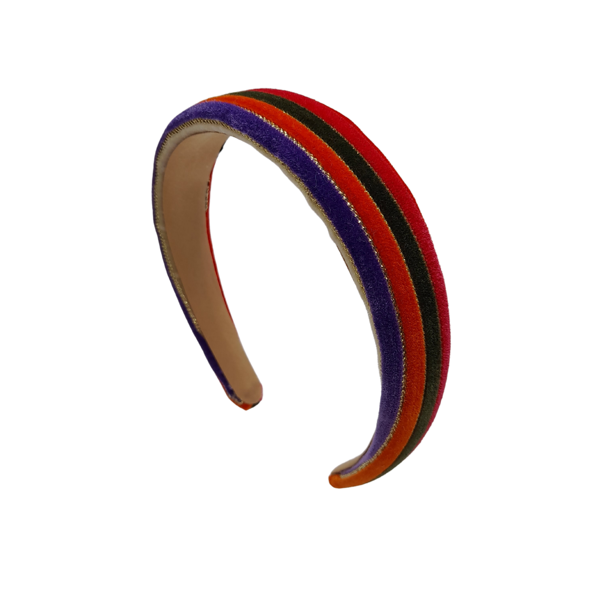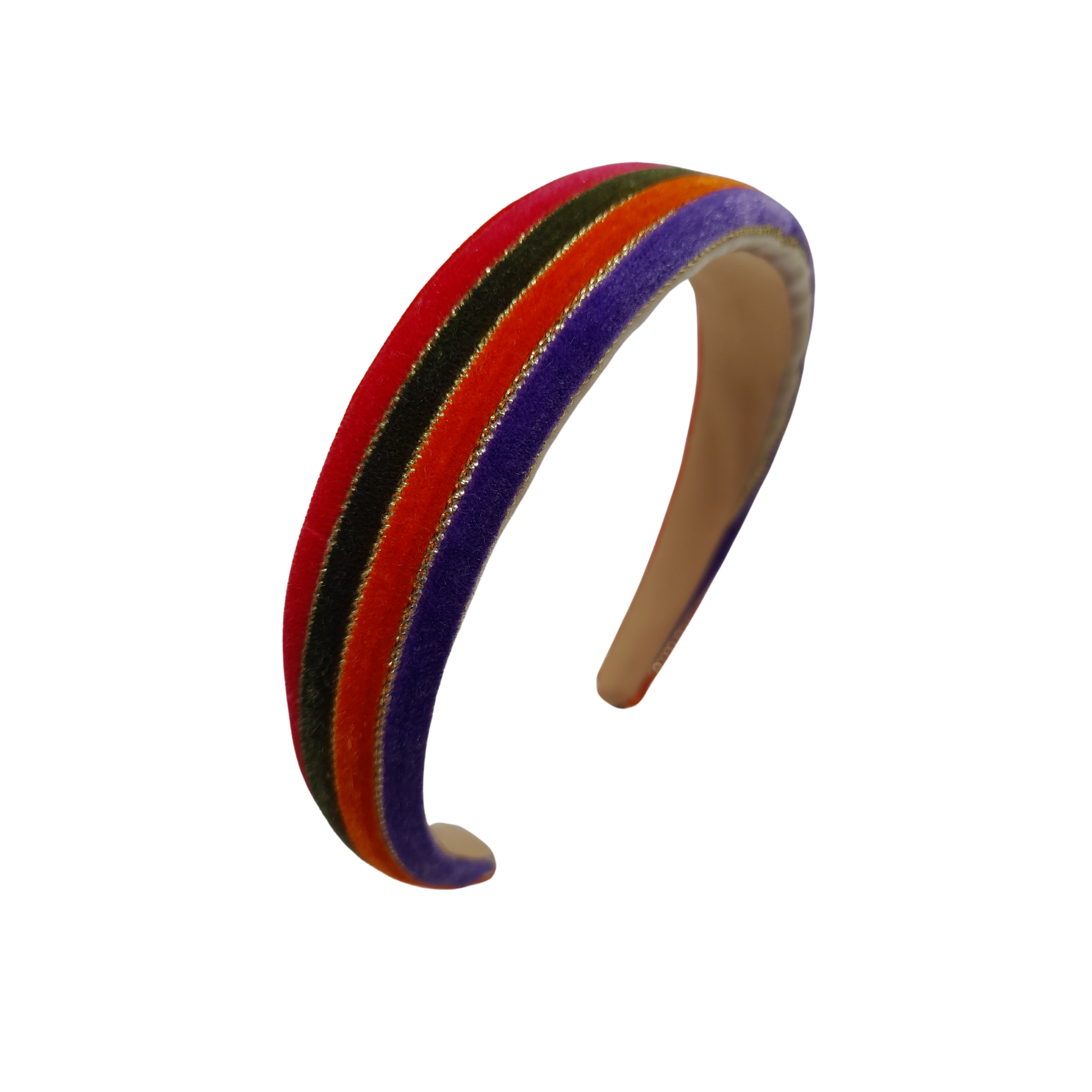 Diademas altas y anchas, confeccionadas con cintas de colores en suave terciopelo que aportan textura y un contraste vibrante, ideal para dar un toque original, elegante y lleno de personalidad a cualquier look.