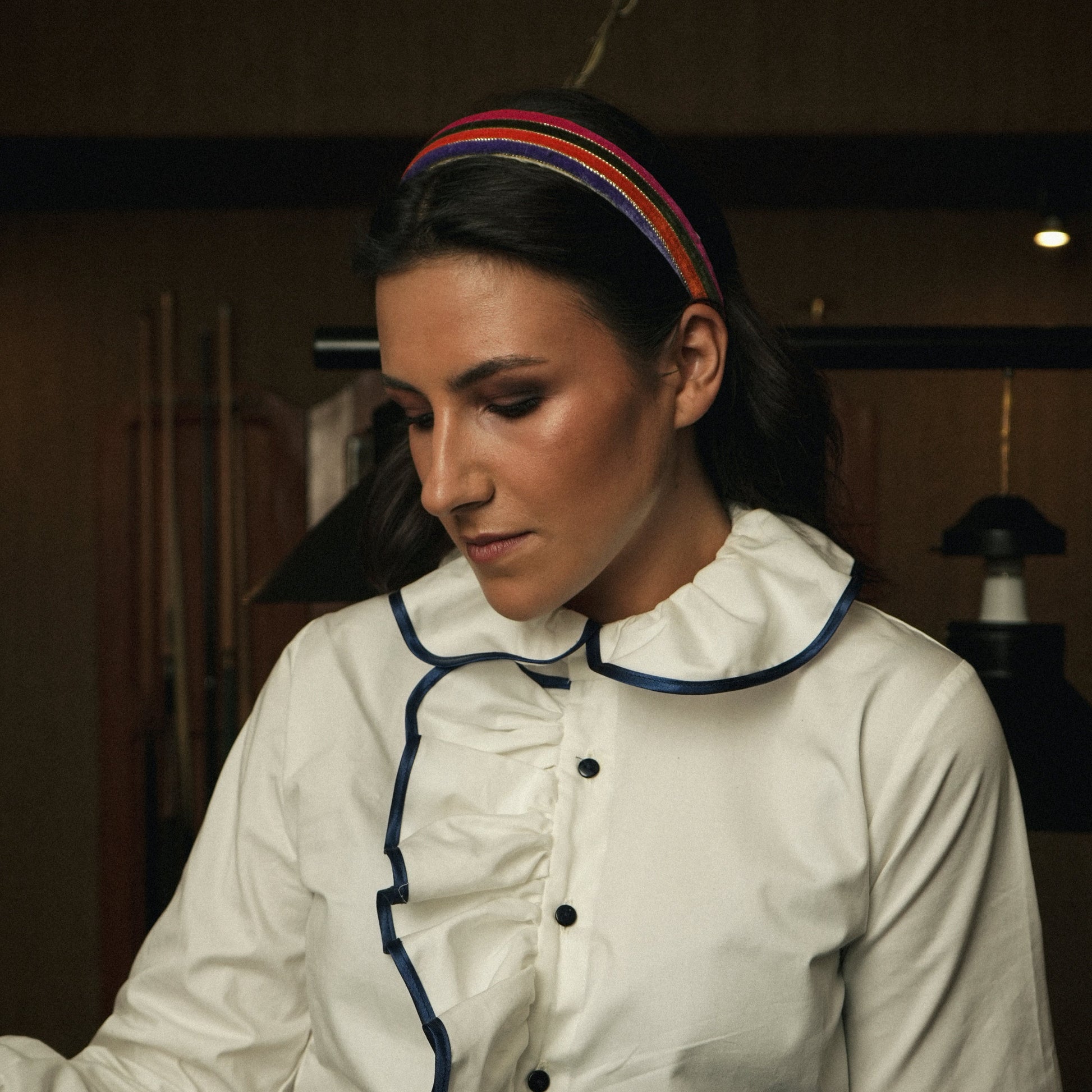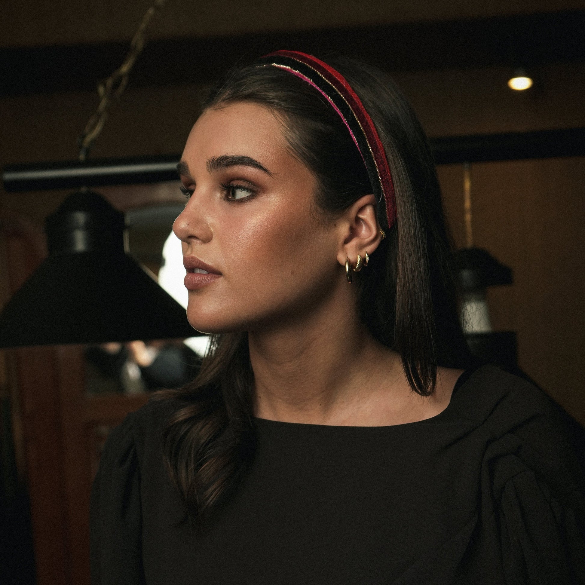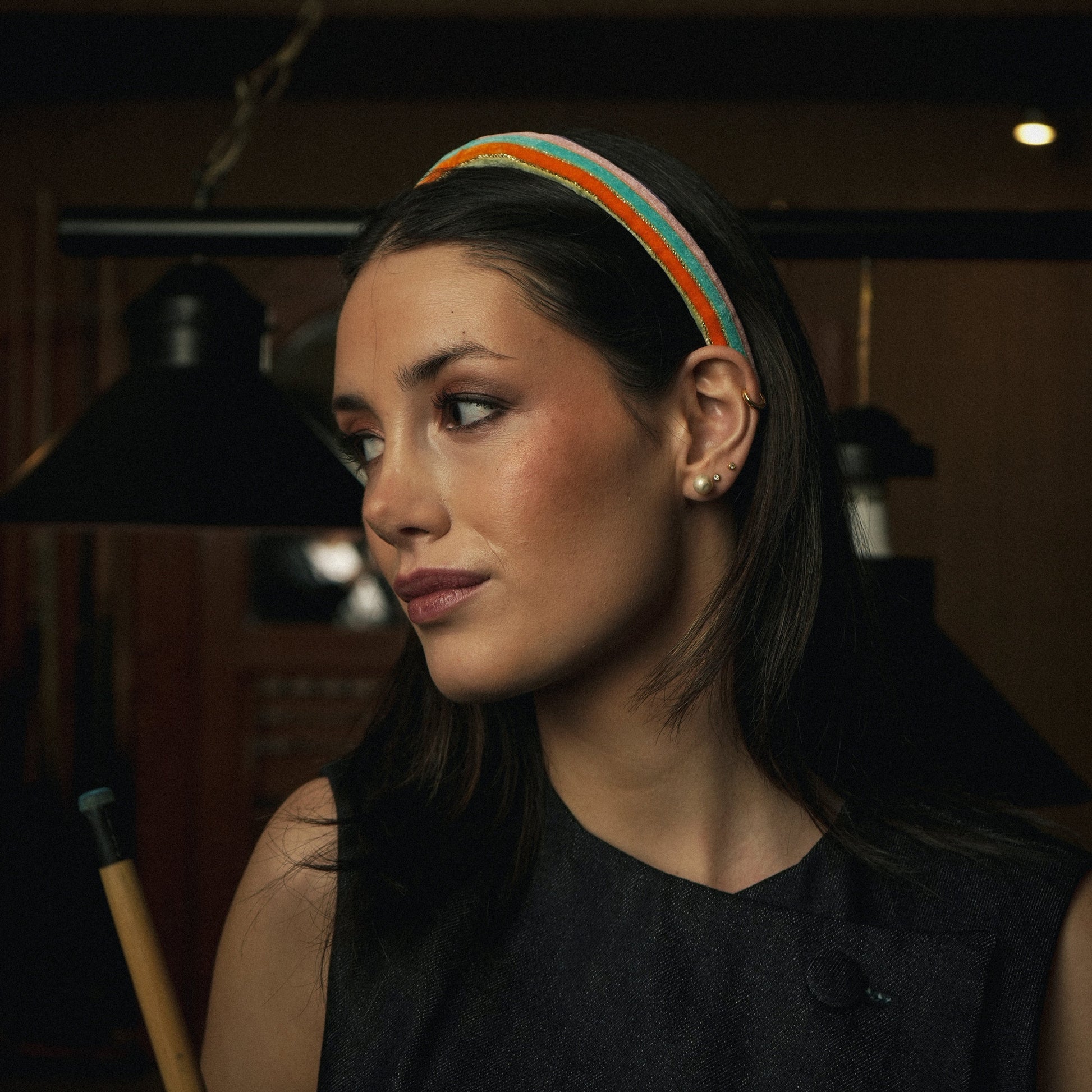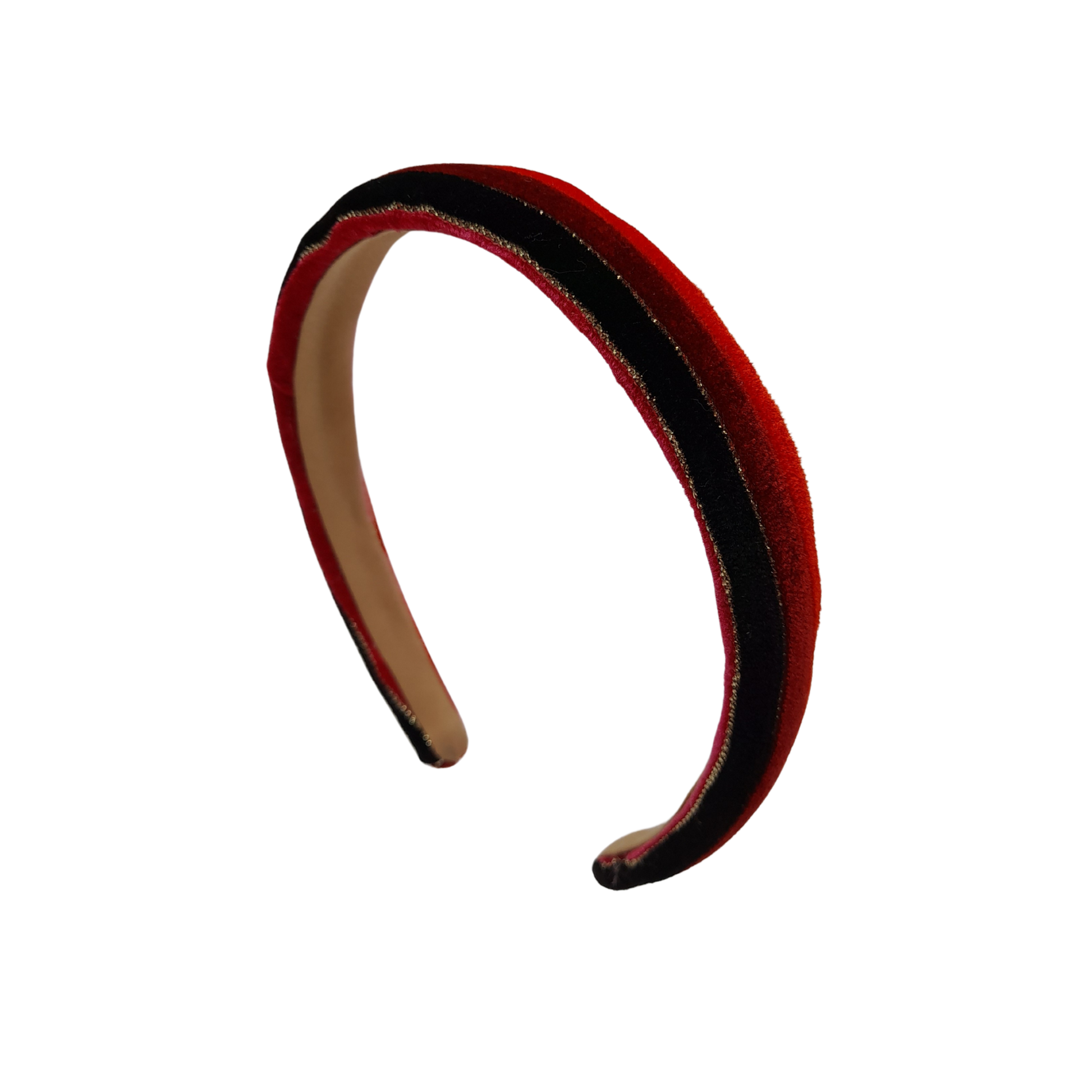 Diademas altas y anchas, confeccionadas con cintas de colores en suave terciopelo que aportan textura y un contraste vibrante, ideal para dar un toque original, elegante y lleno de personalidad a cualquier look.