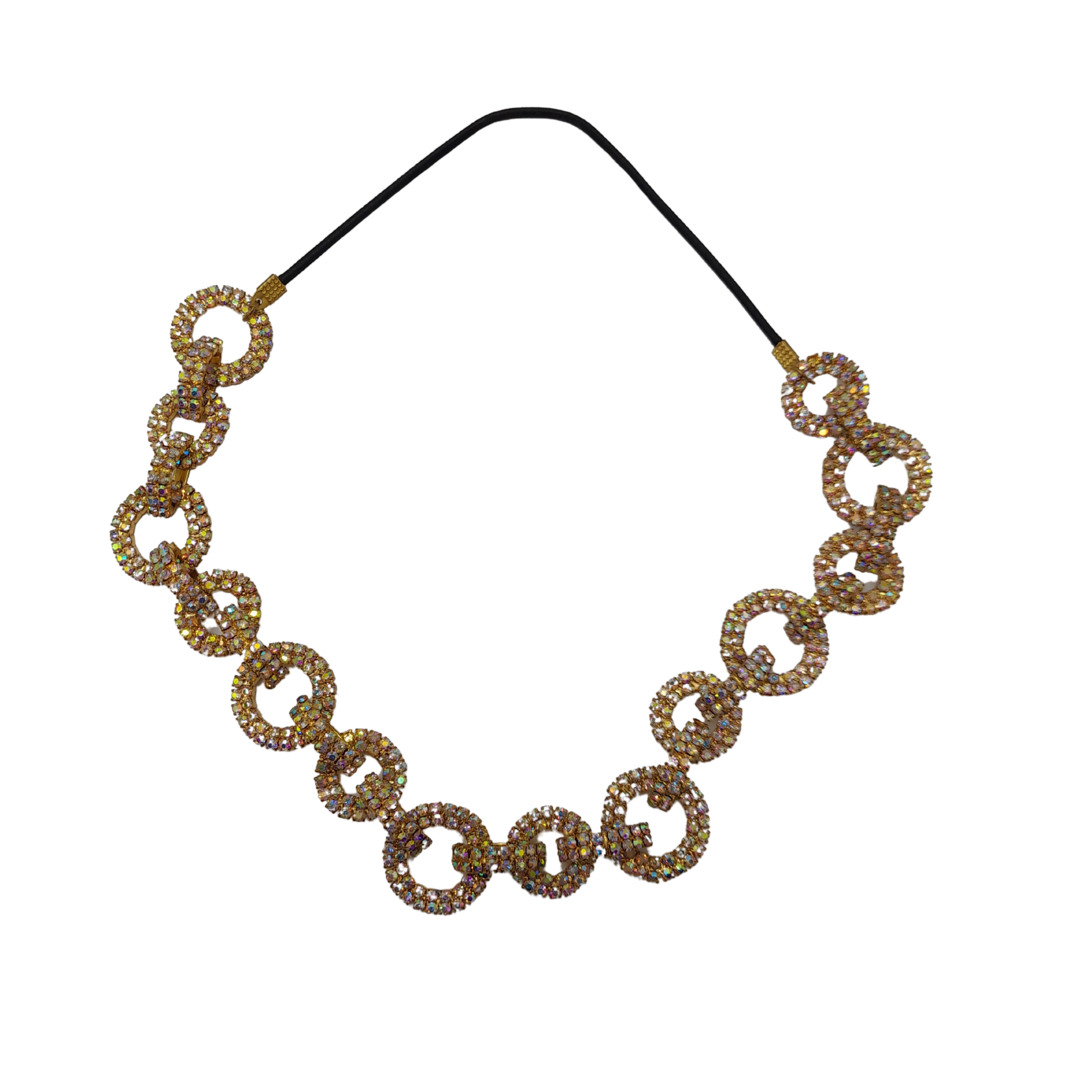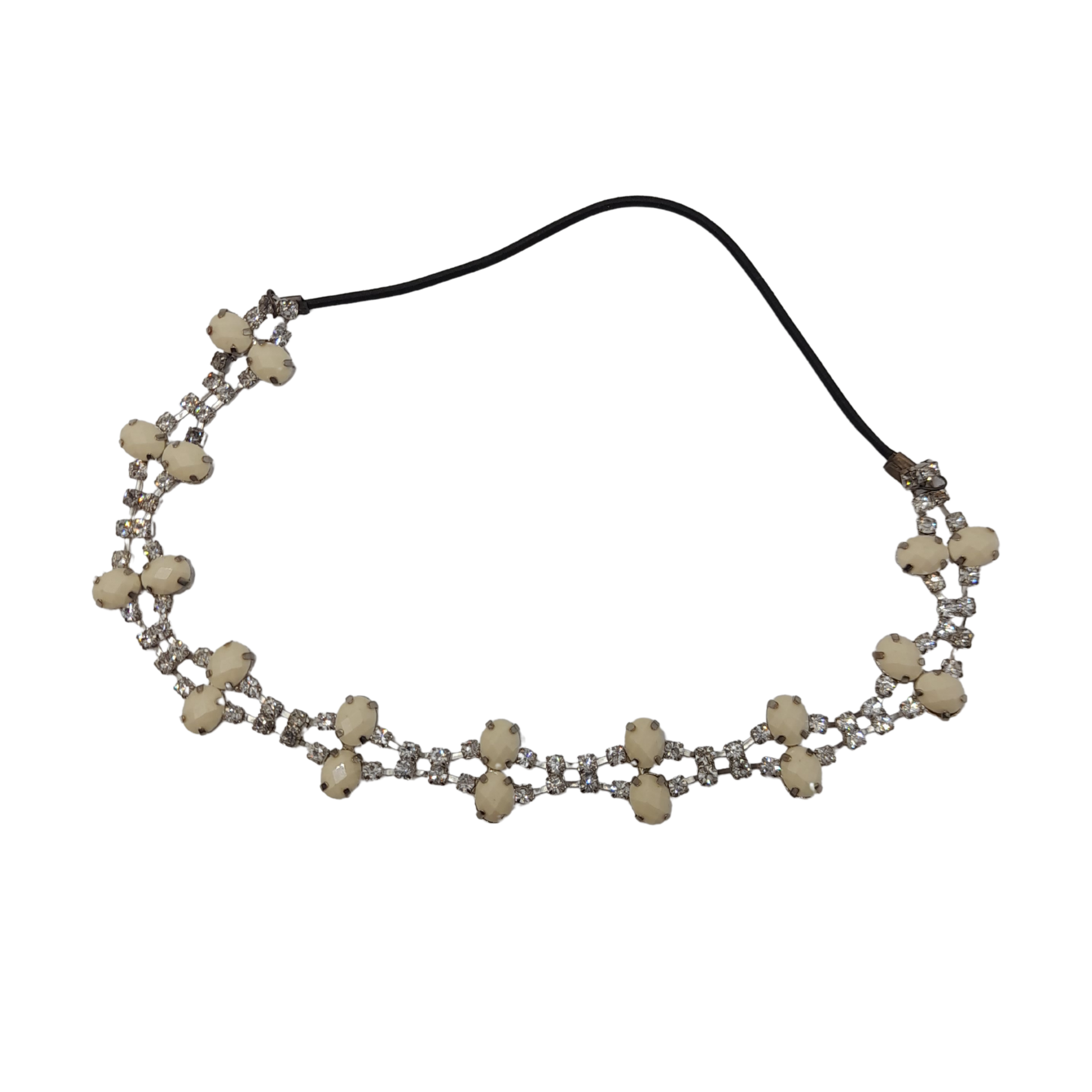 Diadema con elástico, delicadamente confeccionada con pedrería de alta calidad, que aporta un brillo sofisticado y un toque de glamour a tu look. Su diseño elástico asegura comodidad durante todo el día, mientras que la pedrería eleva cualquier peinado, convirtiéndolo en el centro de atención