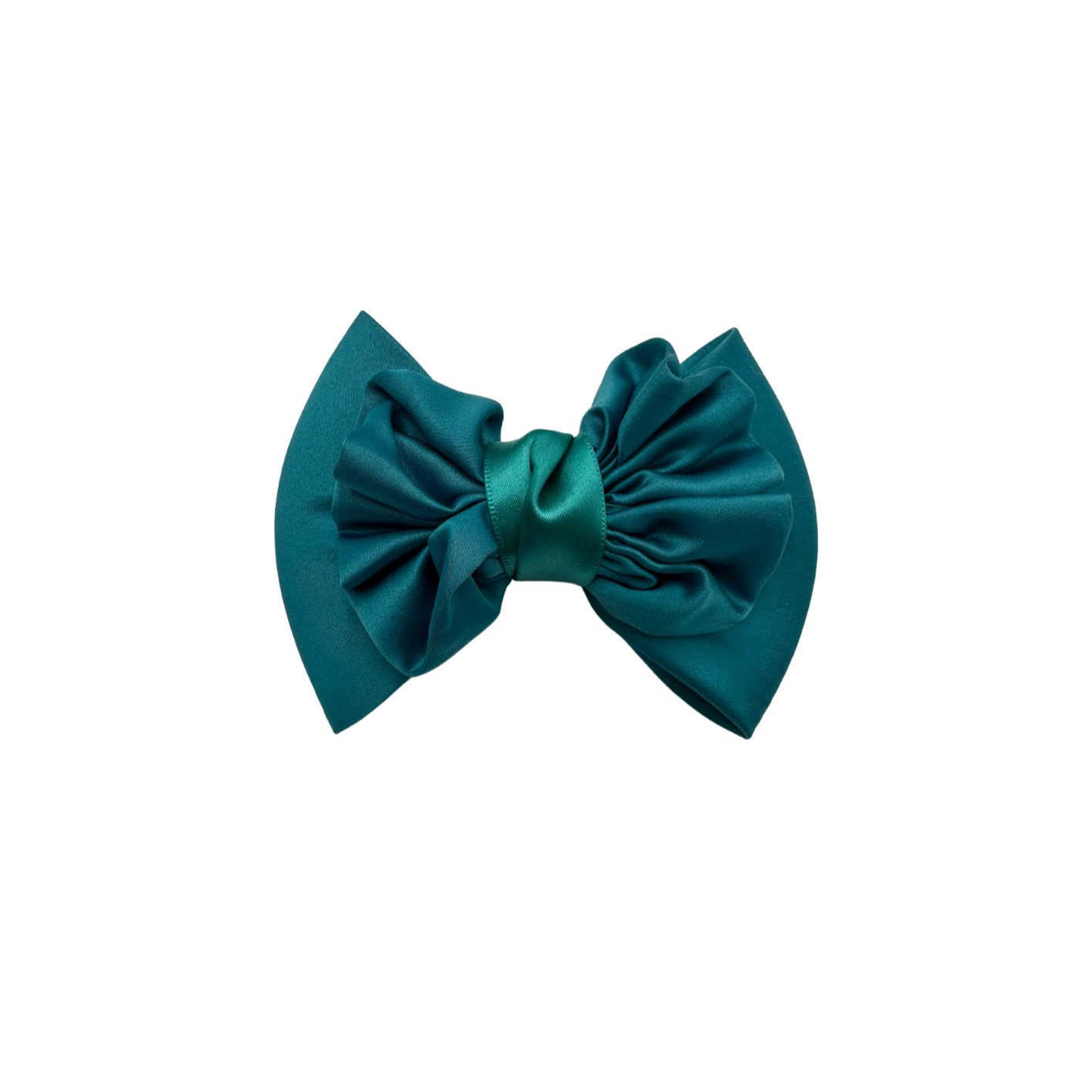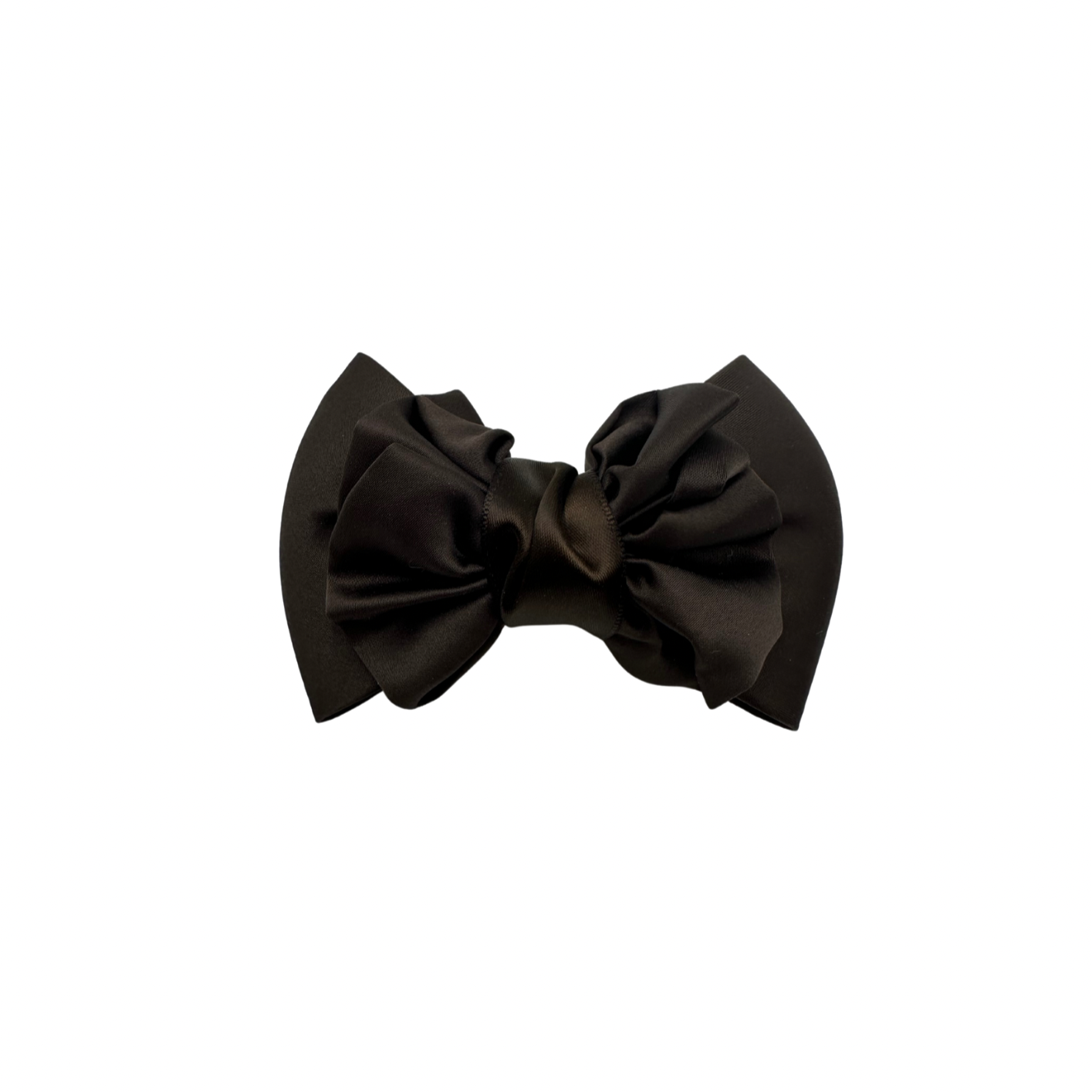 Traba para el cabello de diseño doble, confeccionada con tela drapeada que aporta volumen y textura. En el centro, una cinta delicadamente colocada acentúa su estructura. Mide 11 cm de largo por 8 cm de ancho, y es ideal para recoger el cabello con un estilo elegante y distintivo. Perfecta para ocasiones especiales o para realzar un look cotidiano con un toque sofisticado.
